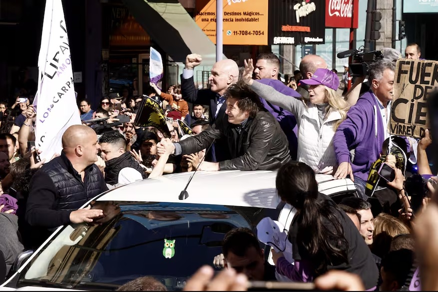 El episodio se produjo mientras Milei se encontraba de pie sobre la caja de una camioneta 4×4 blanca, acompañado por su hermana y secretaria General de la Presidencia, Karina Milei; el diputado José Luis Espert; el armador y candidato Sebastián Pareja, y otros referentes libertarios.